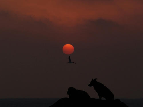 あさ、海に行ったんだけど雨が降っていたので早めに切り上げて帰ってあさごはんを食べた。夕方も海に行くつもりだったんだけど、ツナミだからと言うので山に行った。山では高いところに居ないと危ないとか言われて色んな高いところに登らされた。ウサはツナミが来ても自力で逃げられるからってあまり高いところには来なかった。