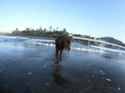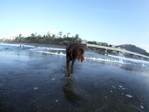 きのうはぱぱの帰りが遅かったので、今日の海は凄く短め。