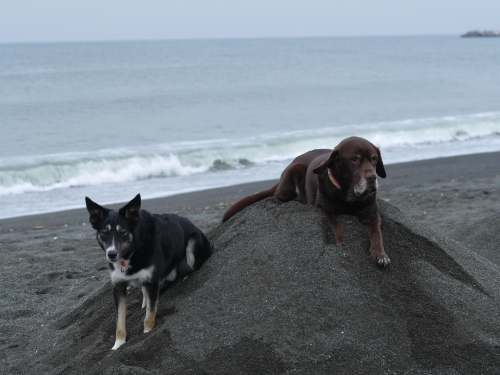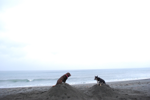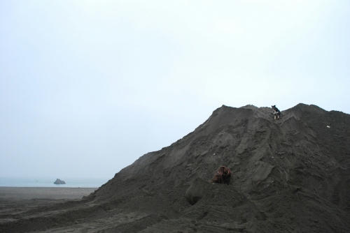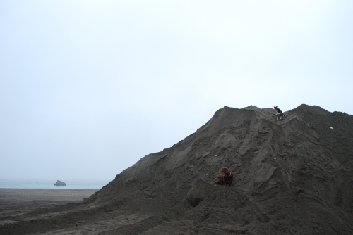 ボクタチはぱぱの作ったお山は見捨てて、機械で作ったお山に登って見た。この前までもっと大きなお山だったんだけど、どこかに砂を運び出したのかもうほとんどお山がなくなってた。ラストチャンスをものにしたのかな?