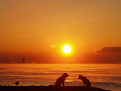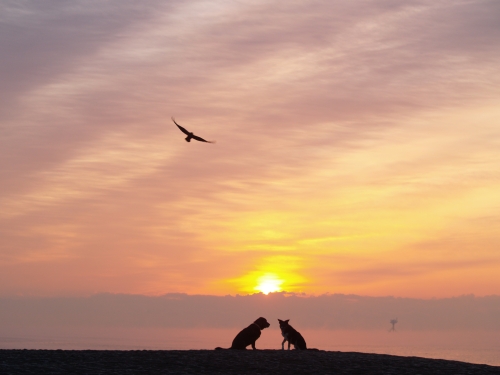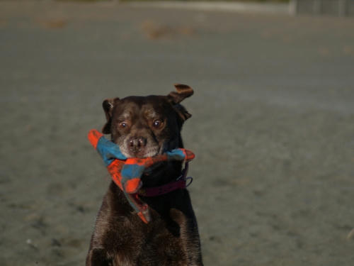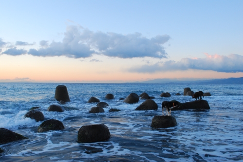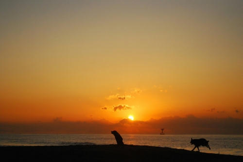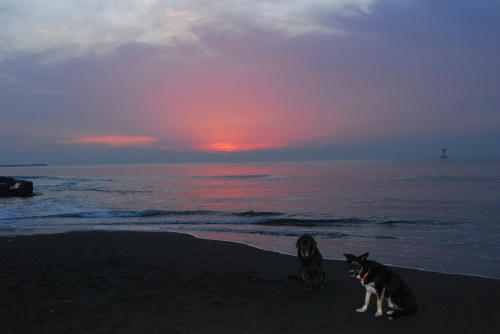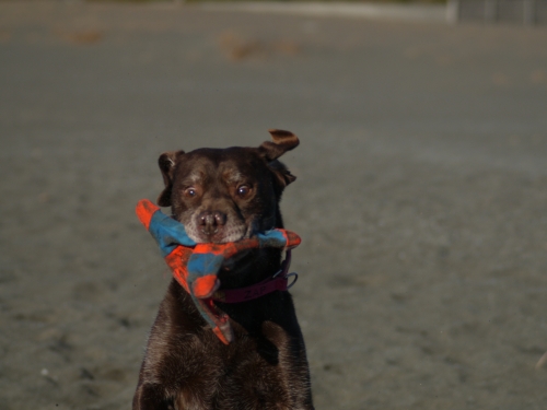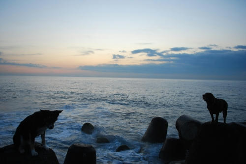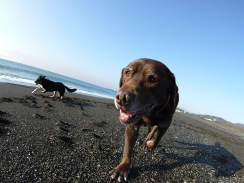 今日海で最初に出会ったワンコはウサと遊ぶのにふさわしい元気なワンコだった。でもそのワンコのおかさんの説明では、14才でず---と放し飼いだったから元気いっぱいなんだそうだ。