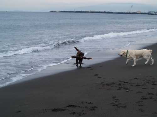 寒かったけど雪は降らなかった。海で過ごす時間も短めで、ごはんを食べる事とおやつを食べる事、お昼寝をすること、背中にポンをする事だけが楽しみだ。ウサはいつものとおり忠犬ごっこもしてたな。