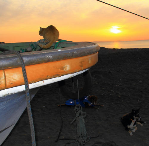 あさの海はいつもの通りネコさんが出迎えてくれた。