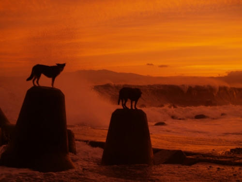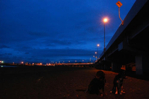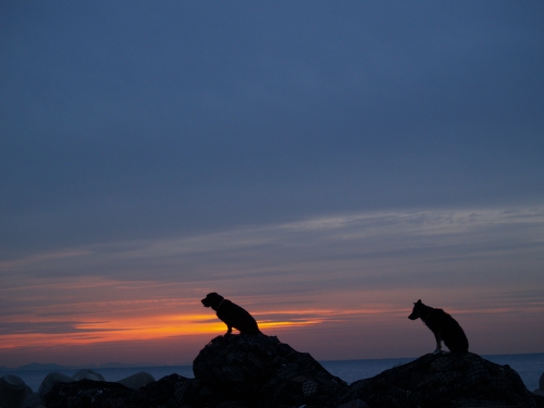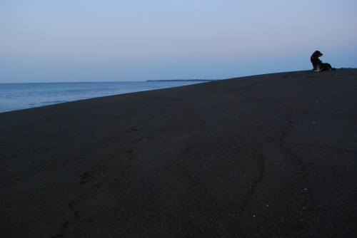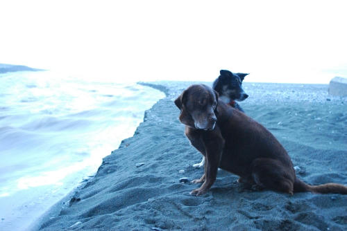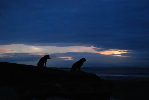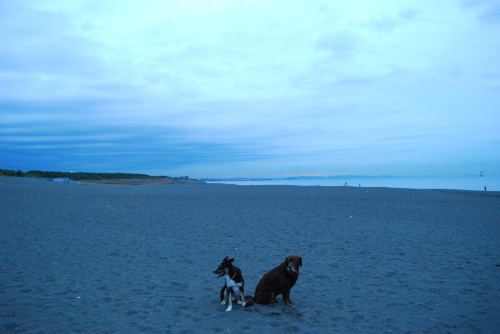 クマに会った時とかにやる技だけど、どっちにしてもボクは目が醒めてるので、ぱぱの事をとりあえず起してみる。外は真っ暗なので本気で起すわけではないけど、ぱぱは時計を確認してから「もうちょっと寝てて!」と言って毛布をかぶる。それでも1回起きると寝られないらしく、しばらくするとのそのそと起きてしまう。ボクは暗い中海には行きたくないので、ボクのベッドにそのまま居るんだけど、ウサがいそいそとおきてしまうので仕方なくボクも起きる。ボク一人だったら寝てられるのにね。