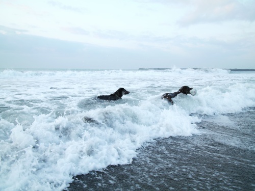 海に入るとシャワーの時間が長くなるので海に居る時間が短くなる、海に居る時間を長くしたい時は海には入らない。でも海に入らない予定でも波打ち際を走ってると何となく海に入ってしまうときがあるんだよね。そんなときは毒を食らわばってことで存分に海に入っちゃう。で時間短縮のためにぱぱが食べる朝ごはんのおかずが1個あまる。今朝はボクタチも食べられるものが余ったんだけど、ボクタチに振舞われる事は無かったね。