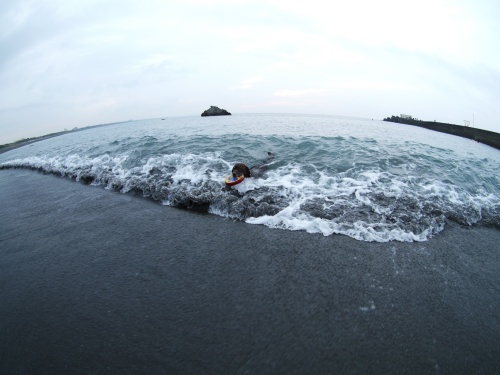 海は混雑してた。何だか役者さんって人たちが海で遊んでるみたい。役者さんも海に入るんだけど、楽しいわけではなくてお仕事みたい。ボクが今日海に入ったのも半分はお仕事かな?でも役者さんみたいに着替える事は無いから、着替えるのが大変だから早く次のシーンを撮ろうよなんて催促はしない。