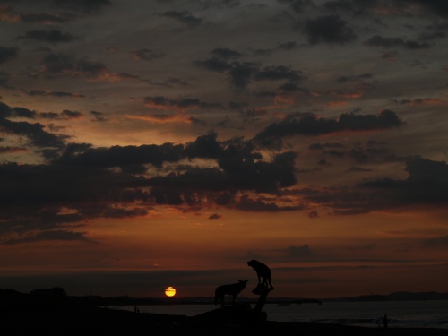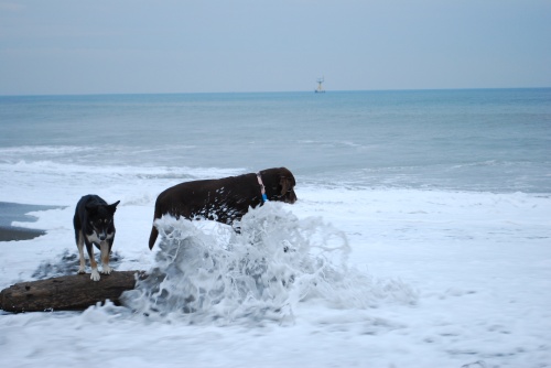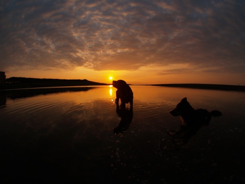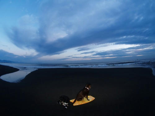 海に行こうと外に出たら雨が降ってた。でも、海に着いたら降ってなかった。波も無かったし、最近いつも登らされてた木も無くなってた。ぱぱは何をして良いかわからなくてブラブラと砂の上を歩いて、暫くするとウサのナガグツに入った砂を取り除いてまた歩く。それを何回か繰り返して朝の海は終った。