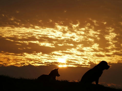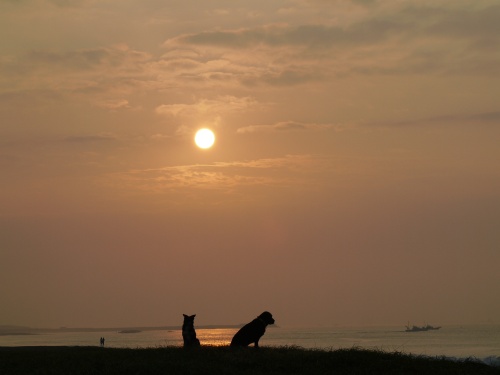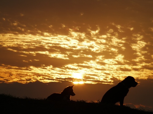 この前カメラを持って現れた知らないおばさんは、ボクタチを指差して写真を撮っても良いですかって聞いたけど。今日のおじさんの目的はお日さまを撮る事だったみたい。