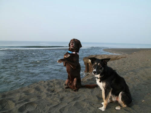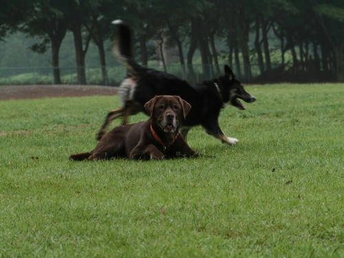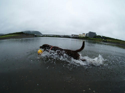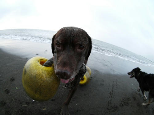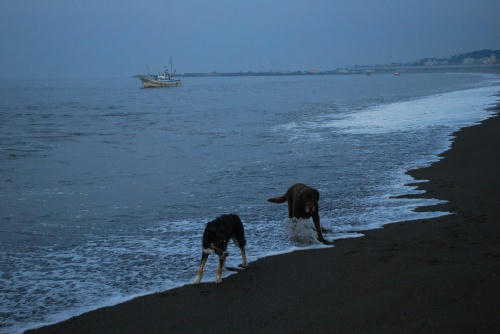 あさは雨が降ってたのでさんぽをあきらめたみたい。でも、随分経ったころ雨がやんだので海に行った。まだ雨は降ってたけど、すぐにボール遊び。その遊びが終ったのはボクがボールをパンクさせたからだ。そんなこんなで仕切り直しをしてたら今日もクロエちゃんに会った。ぱぱだけとあるくよりはかなり楽チンで朝の海を満喫できたかも。