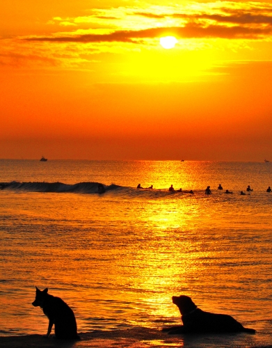 夕方にも海に