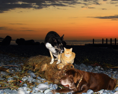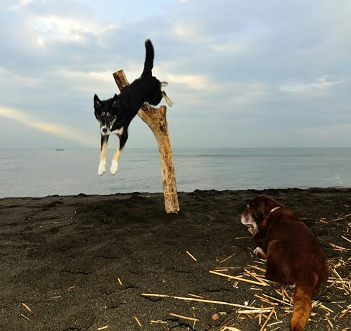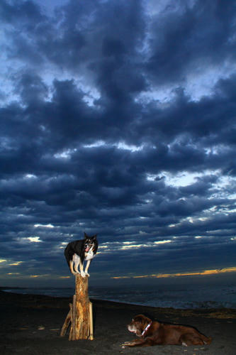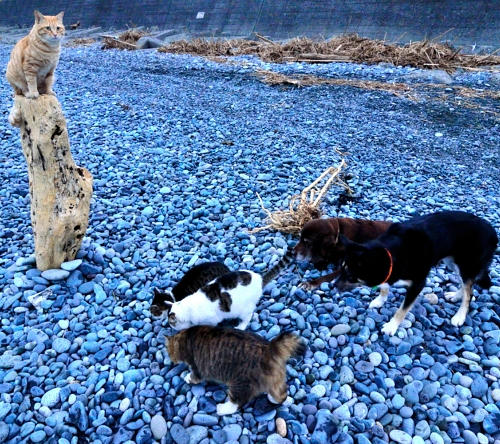海に着くとネコさんもお月見をするみたいな