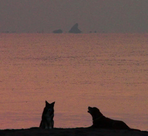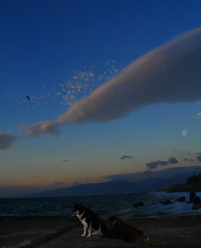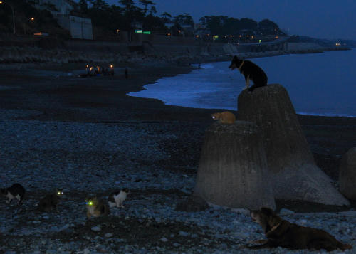 なんだか寂しげな浜を西に向かって歩いて電燈の