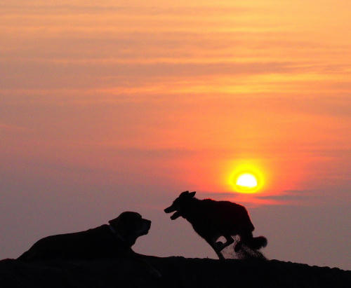 お日さまが出てくる気配がしたので海の出口に