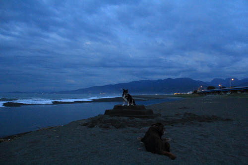ぱぱはいつもより多く砂山に登って遊んでた。