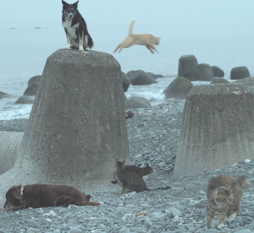 次の海ではいつものネコさんと休憩した。