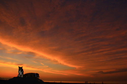 海に着くと車から降りてないのにネコさん