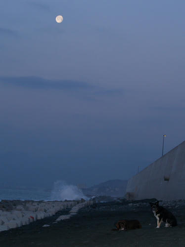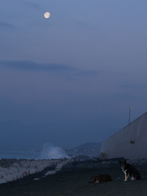 少し欠けたお月さまがお山の方に沈みかけてる。