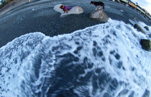 遊んでいる間はボクは休憩してる。それで朝の海は