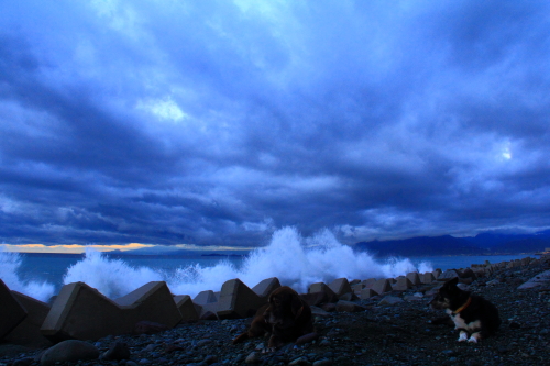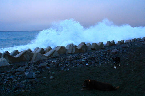雨も降ってたし波しぶきもすごかったのであきらめたんだ。