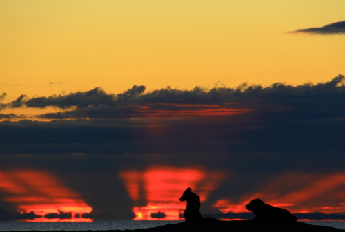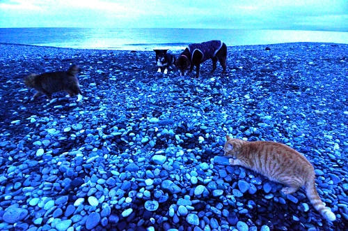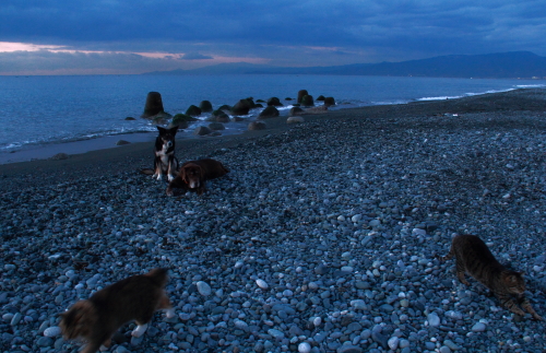 夕方雨の中海に着くと未だ少し波は高かったし薄暗かった