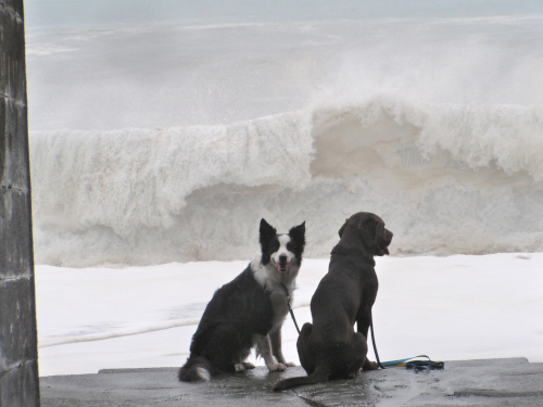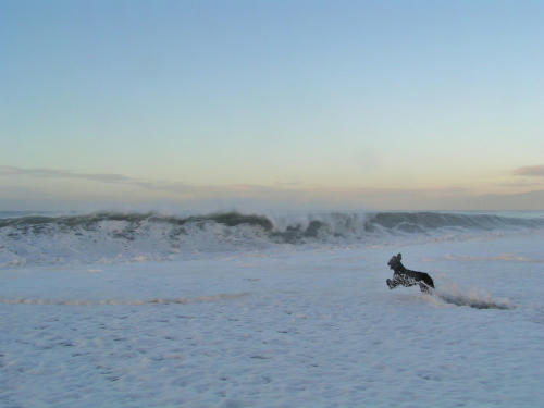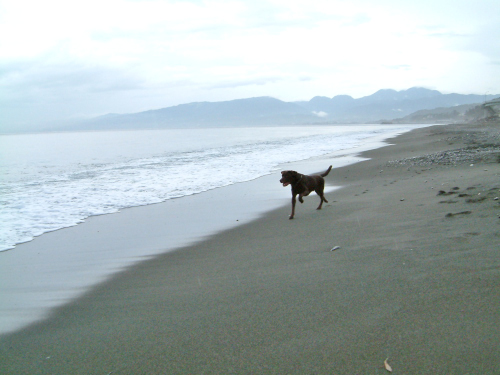 波が高いので貸しきり状態で遊べる。 波が引くと広い砂浜なんだけど時々はこんな感じに。