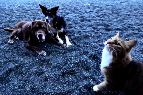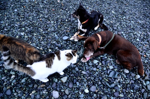 ネコたちはボクタチの周りにやってきて、たまにケンカを売ってくる。