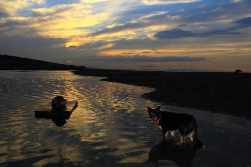 海の入口で小さなワンコを連れたおじさんに話しかけられた。
