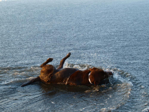 ご褒美に土砂降りの雨の中走り回らせてもらったみたいだ。