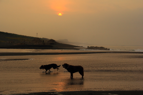 いつもはぱぱについていくウサも涼しいので海に入る気分ではないみたいだ。