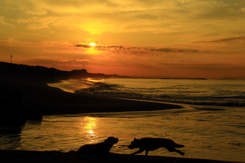 波が高いのでサーフィンの人たちが気持ちよさそうに波の上をすべってる。