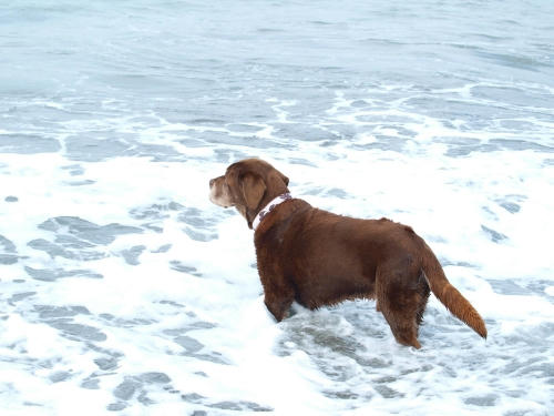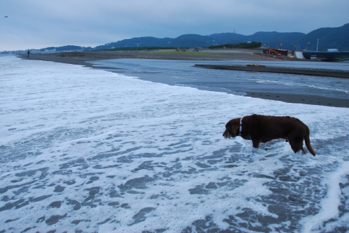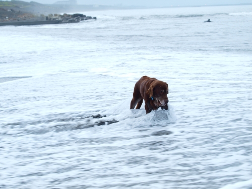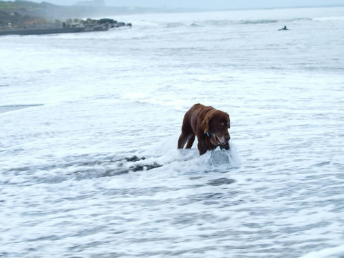 そんなに波は高くないのにすぐに波にぬれちゃう部分が広い。