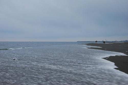 いつものようにトンビがやってきたけど、カラスはやってこなかった。なので波打ち際に