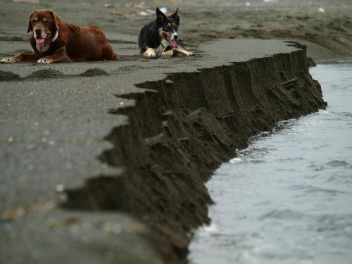 海はずいぶん低くなっているけど、波はそれなりに高いので波打ち際には