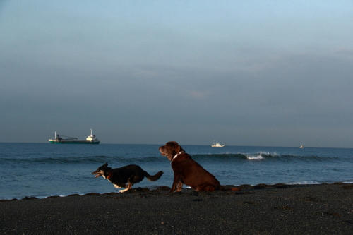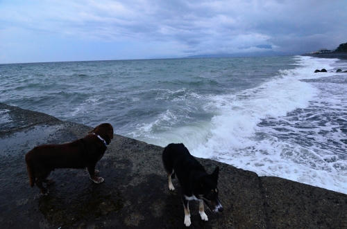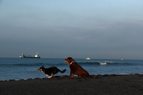 今日はウサはかなり走り回って、だんだんわざと波に突進して最後はいつも