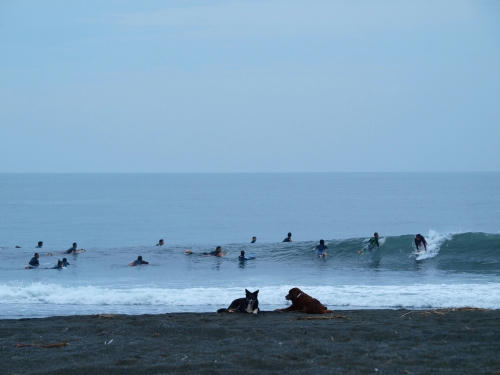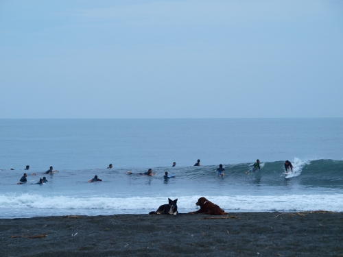 今日はまずサーフィン見物から。なかなかの盛況みたいだ。