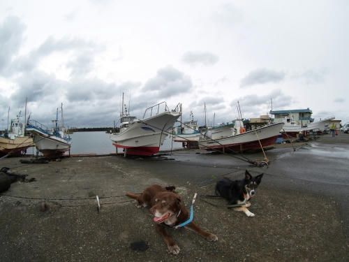 風が強い。波しぶきも飛んでくるけど、ときどき雨が混じっているみたいだ。