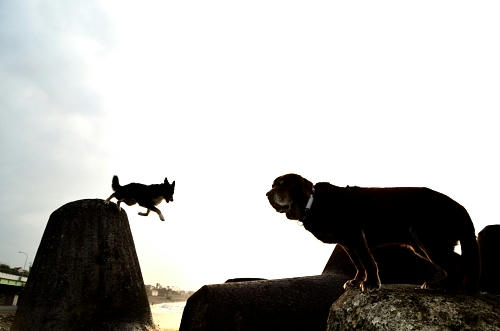 りを走り回っていた。そうやってかなりくつろいだ後海の出口に向かっていると、柴犬が