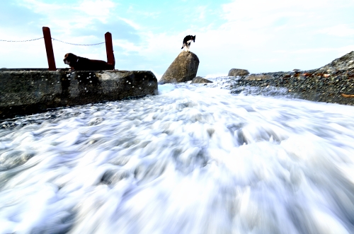 ときどき波が船着き場の上まで上がってくるけどそれはほんのちょびっとだけ。