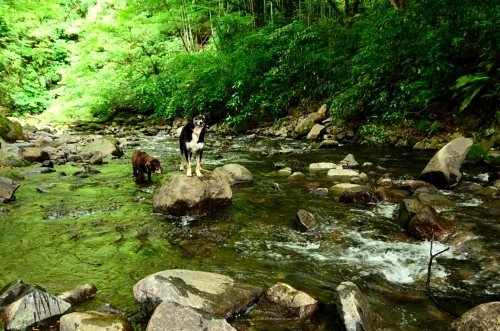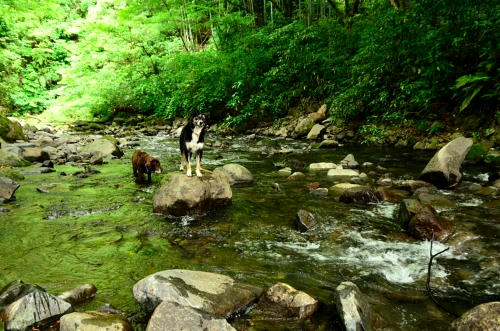 お山を下りる途中で川に降りてみたけど、石がゴロゴロでボクの好みでは無かった。