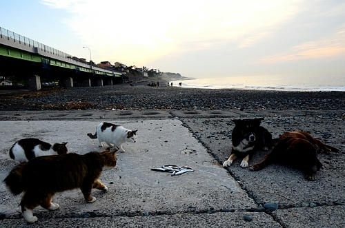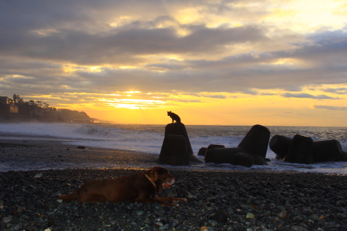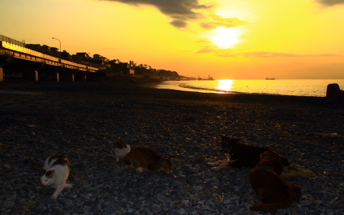 仕事場の方へフラフラと波打ち際を歩いて何も面白いものがなかったので、ネコ