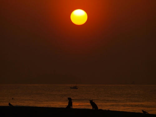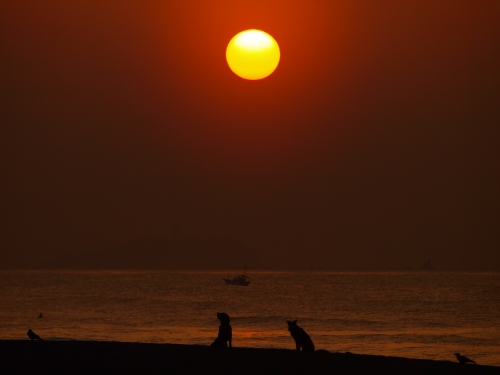 海ではウサだけ元気に走り回っていた。