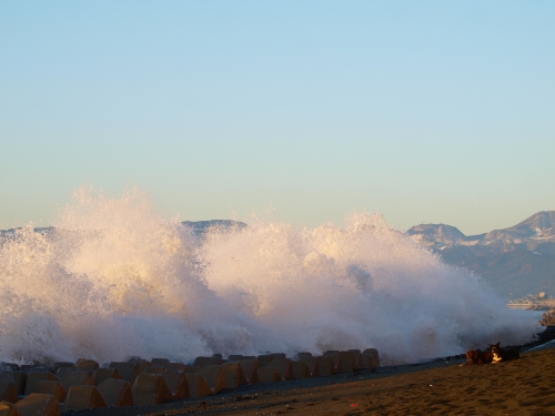 海に着くとバイオリンのおじさんが今日は波がかなり高いからときどき襲ってくるよと教えてくれた。